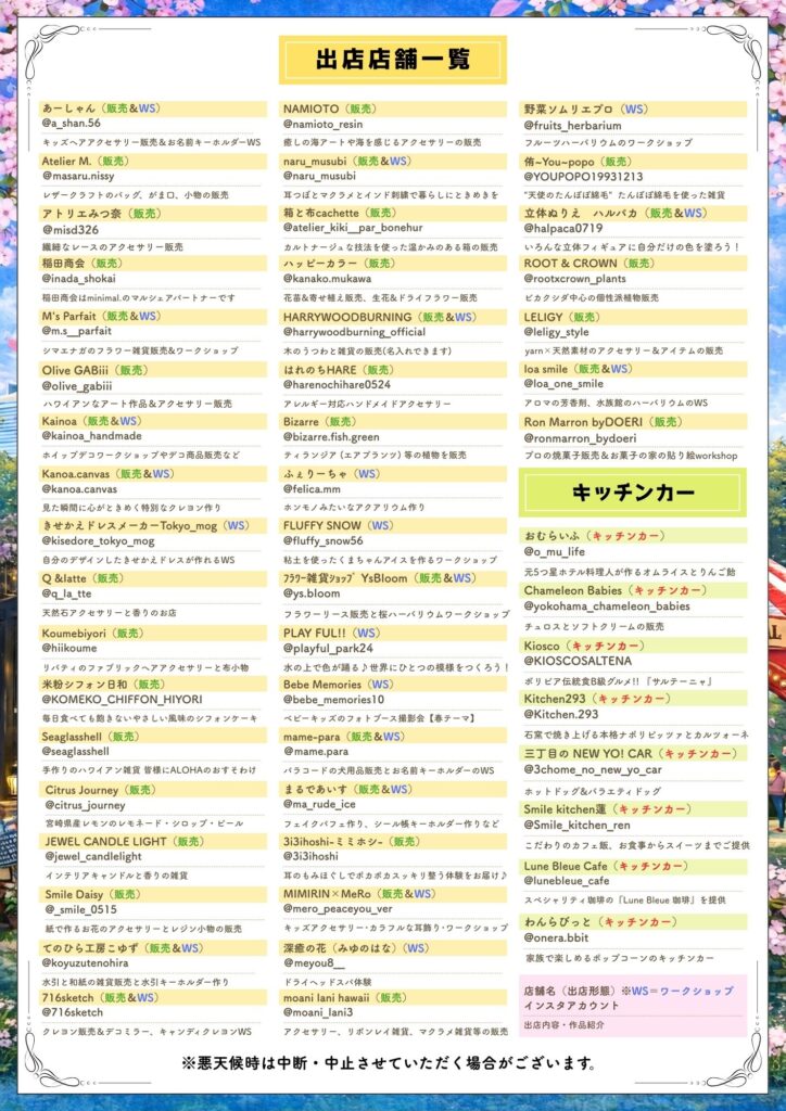 ワークショップやハンドメイド作品の販売、キッチンカーなど全51店舗が大集合!